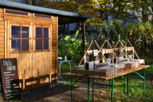 A Natural dye Färberei, a garden shed where natural Indigo dye-bath is located and ferment. Dying tools and materials are here and one can experiment with natural dye techniques. Hands-on workshops will also happen here.