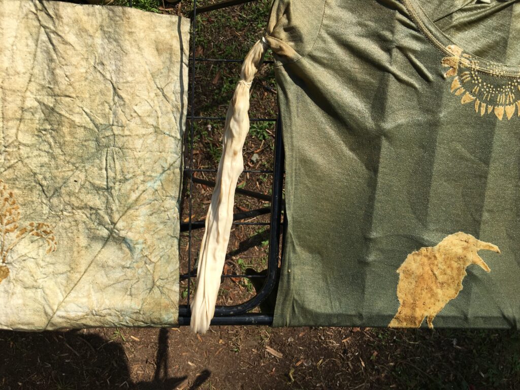 My trial of red beet motif on cotton was a complete failure! The fabric was sold as “natural” from naturestoffe lindemann, and even though I cooked it with soda ash for 45min, it was not enough scouring. You could immediately see that the fabric is not taking color and not even. I will have to scour it again and try.