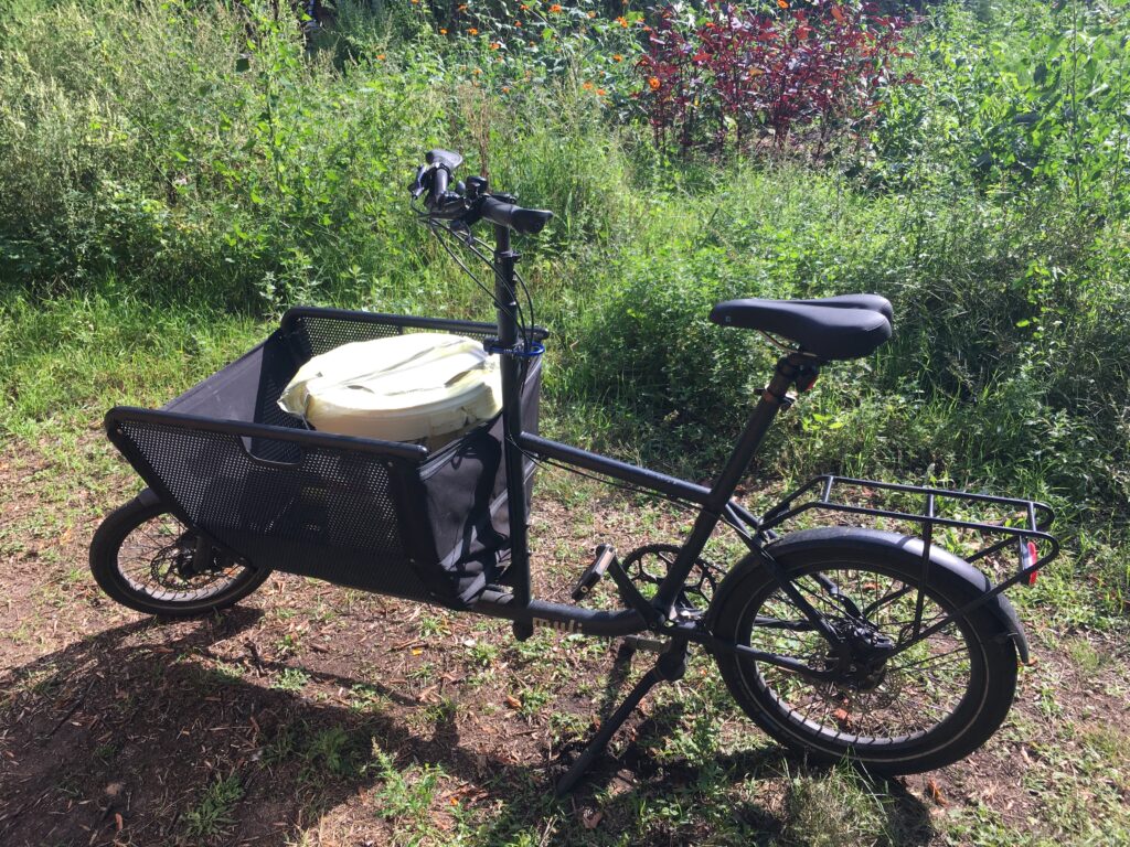 Transporting the vat is not easy as I do not have a car. I borrowed a cargo bike from a friend, packed the vat in water tight bucket and covered it with extra plastic bag so it does not leak by accident. I am a big fan of a cargo bike! it can transport big heavy things without a motor or gasoline!