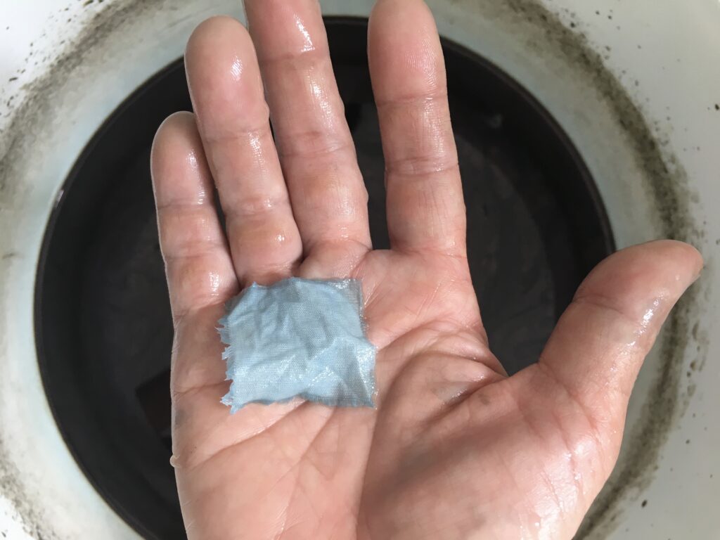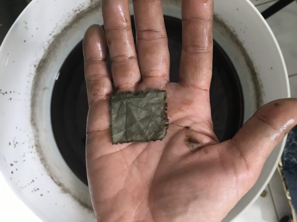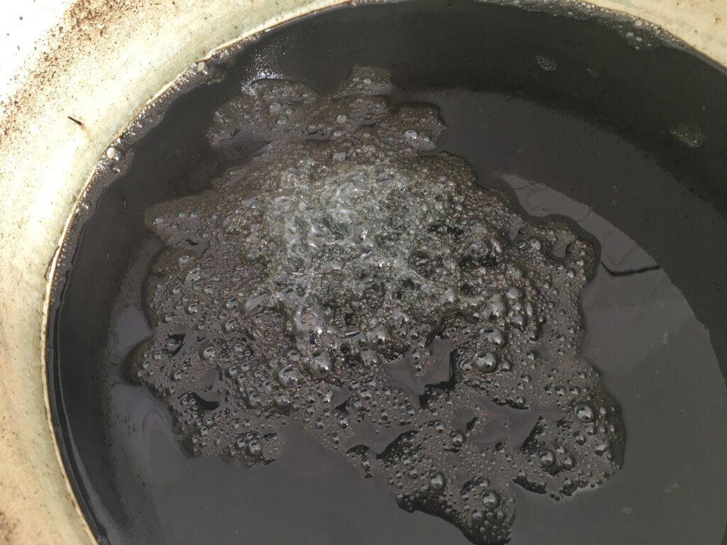 Looking at the weather forecast last week, I decided to bring a part of the vat home (20L, as much as I could fit in 20L bucket and carry with a cargo bike). It has been staying at my bathroom since… and suddenly today, I noticed it started to give color. It has a lot of purple simmer on the surface and color test is showing bright blue! yey!